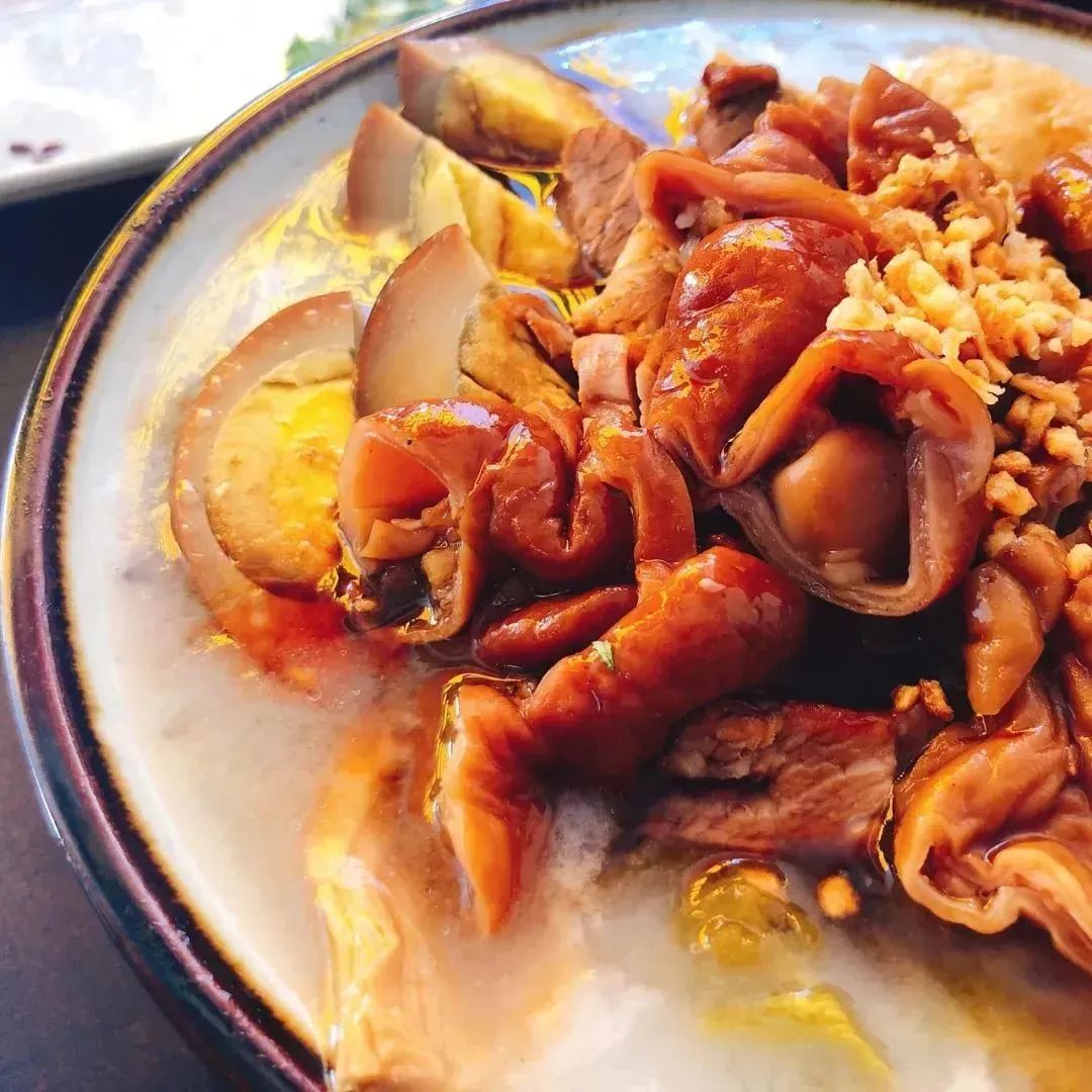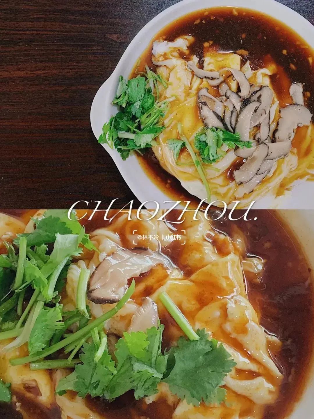 这个可以说是潮州最出名的一家肠粉店了。耗油一点也不腻,鸡蛋与肉沫的标配肠粉酱汁浓郁,大块儿香菇和翠绿的香菜形成视觉上的层次感!超好吃冲冲冲!