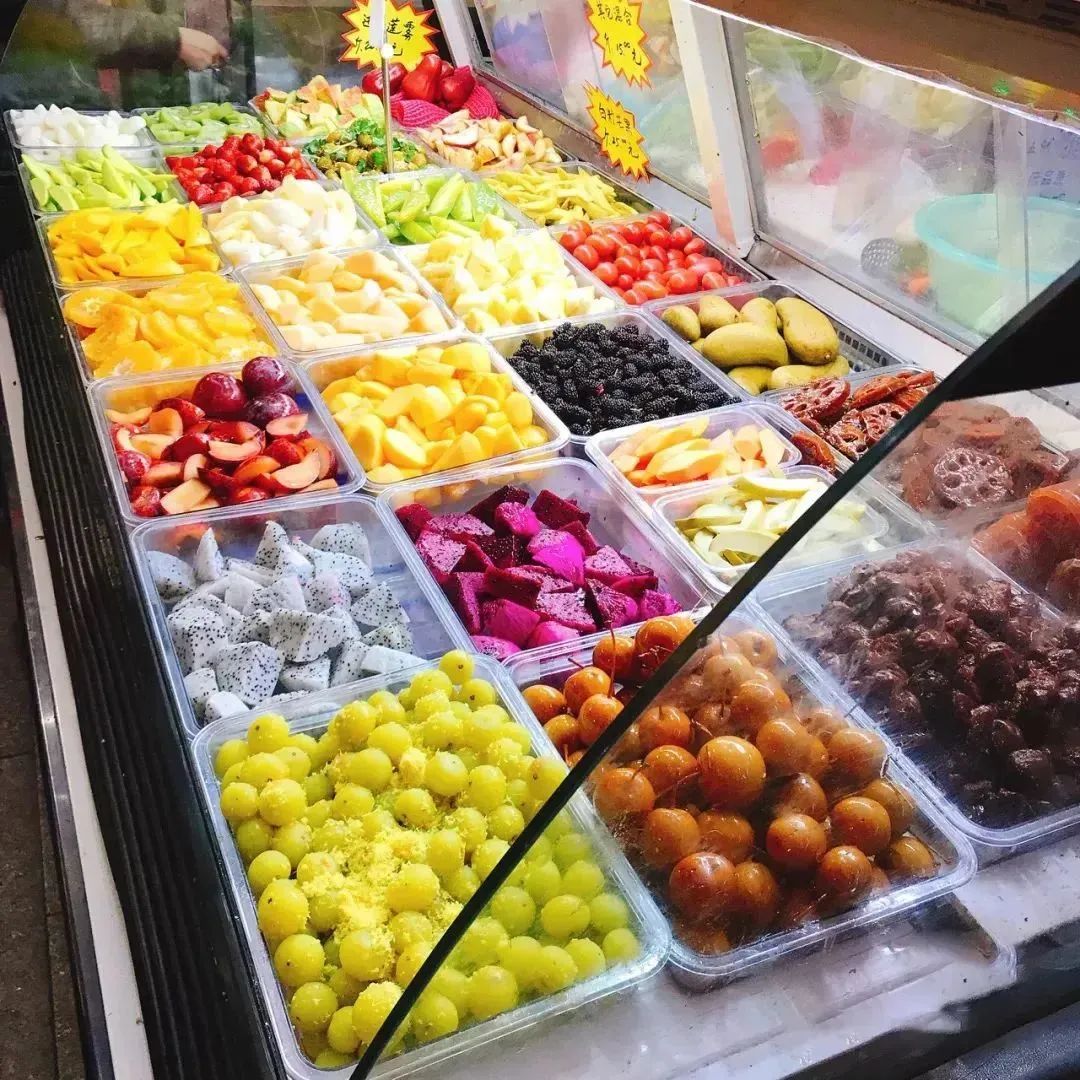/甘草水果/甘草水果也是你会在潮州的街头巷尾遇到的美食,是一种古法泡水果,红红绿绿的清爽水果格外诱人。可以去牌坊街的七丛松甘草水果买。