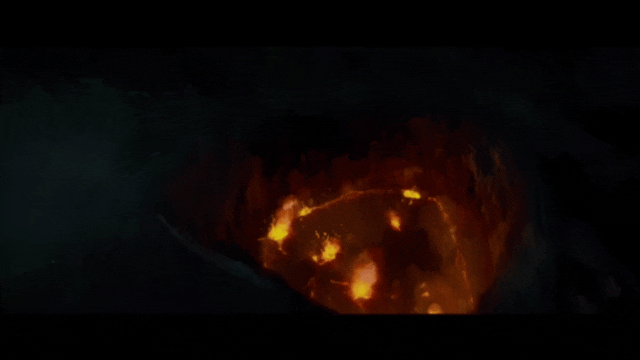 一大片雪松形状的乌云突然出现在地平线上,巨大的火焰熊熊地燃烧起来。由于天空变得一片黑暗,火焰显得格外耀眼。——普林尼