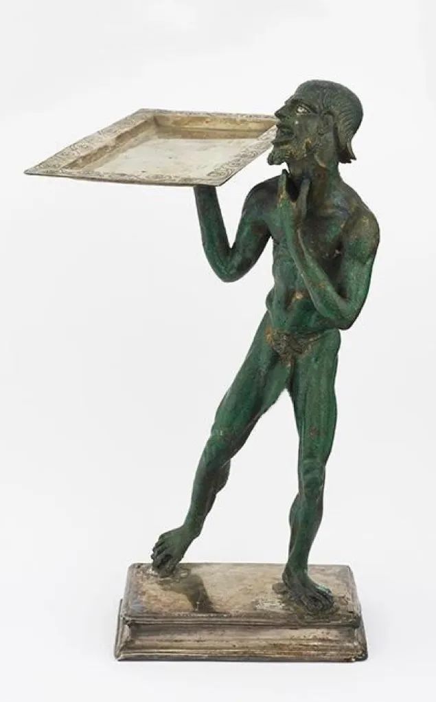 青铜雕塑,发现于男青年之家,人物为一个卖油炸食品的小贩,藏于那不勒斯国家考古博物馆腌制肉铺的摊子上,摊主一边铺货一边大声吆喝,根据老普林尼记载,这里能找到50种口味的猪肉……
