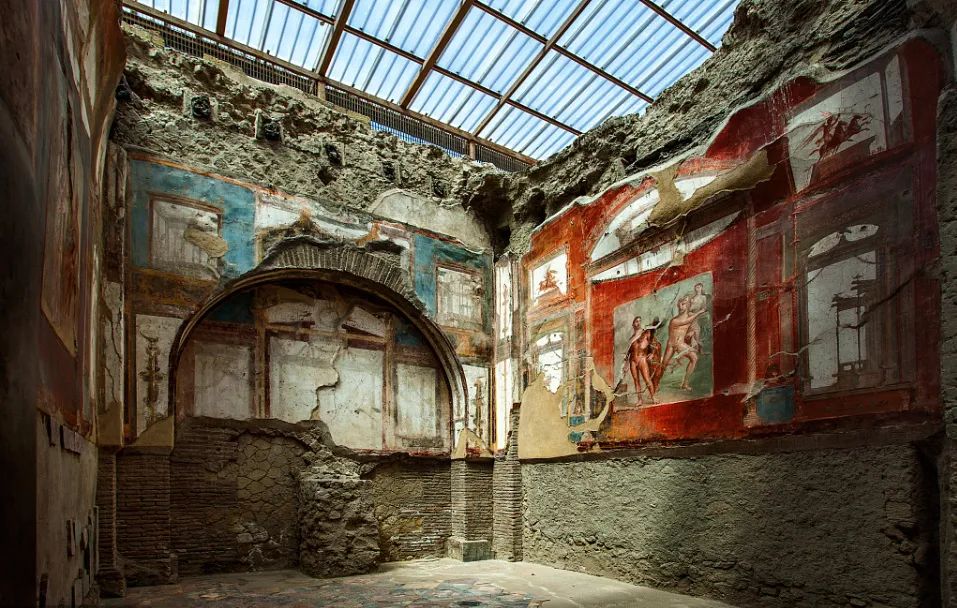 拉斐尔参考尼禄的宫殿,绘制了梵蒂冈教皇宫的壁画厚厚的火山灰如同松脂,将这人间胜景封印,隔绝了空气、也隔绝了接连不断的战争。直至18世纪发掘现场,炫目的金红色映入科考队眼底,照亮了千年的时光。