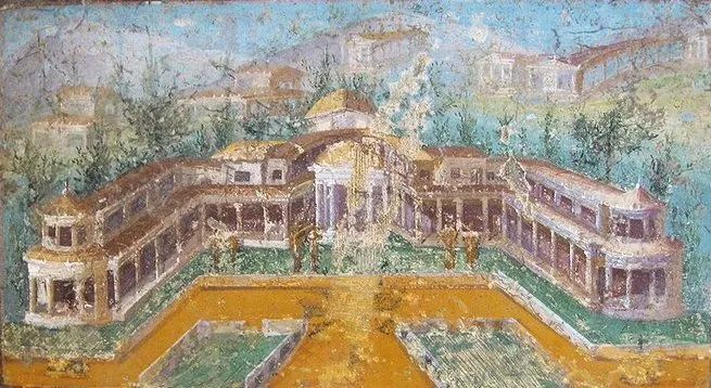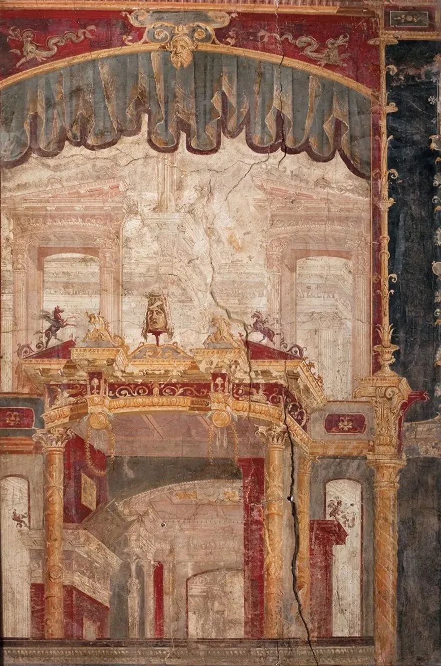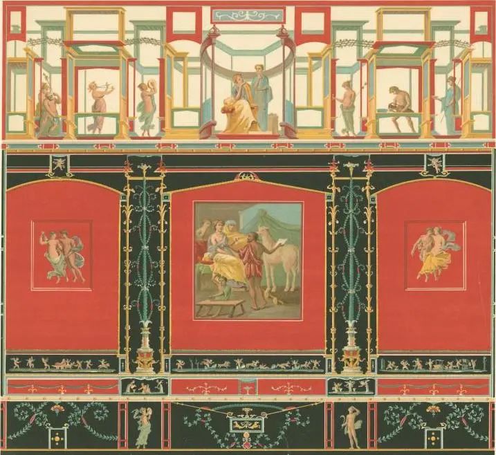 当壁画艺术发展到公元前20年,“第三风格”出现了。复古思潮令希腊化时期埃及的亚历山大里亚壁画风格渗透进来,画面明确上、中、下三分,内容进一步丰富且具备层次感。