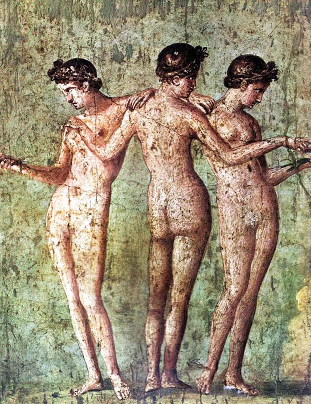 《美惠三女神》【上】庞贝壁画,藏于那不勒斯考古博物馆 / 【下】保罗·鲁本斯,藏于马德里普拉多博物馆*一旦认识了庞贝,会发现西方艺术里庞贝无处不在