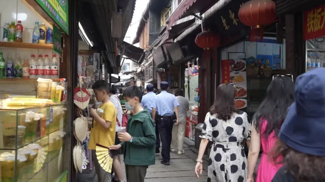 “你现在在什么位置?请加强周边地区的巡逻,特别是游客中心。”在朱家角派出所长三角示范区警务合作中心联合指挥室内,大屏幕上显示着朱家角古镇及周边道路的监控画面,在岗民警一旦发现情况,即可与现场巡逻人员及时沟通并处理。端午小长假的第二天,游客们热情不减,朱家角古镇从早上八点起便迎来了大批客流。小桥流水乌篷船,青砖绿瓦石板路,游客们一边享受着古镇的慢生活,一边感受着这里繁荣旅游商业里的烟火气。