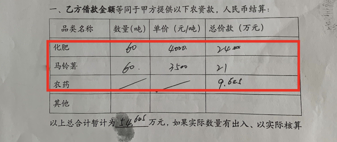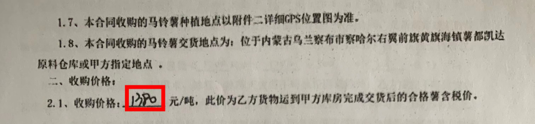 今年三月份,乌兰察布市卓资县的春花(化名)从薯都裕农购买了20吨的商品薯,单价为2900元/吨,而今年商品薯的均价(收购价)在1450元/吨左右。记者询问春花为何高价购买薯都裕农的商品薯,春花回答道:“当时买的是种子,但他们的销售员说只能按商品薯签合同,我就是个农民,人家让签啥就签啥呗。”春花表示今年所购的马铃薯已全部种到地里了,至于收成,只能走一步看一步了。