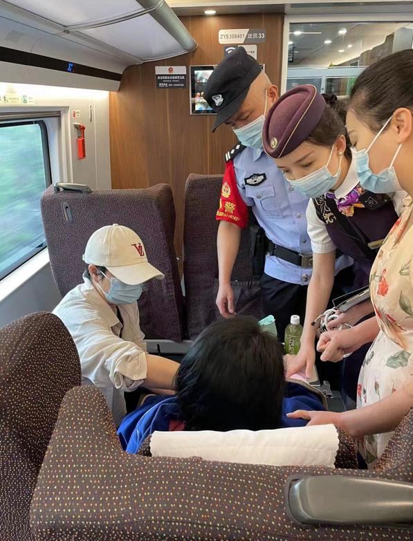 6月18日是父亲节。当天,中国铁路上海局集团有限公司南京客运段高二车队列车长刘杨,值乘由南京南开往三明的G1509次列车。列车到达黄山站前,对讲机里突然传来列车员着急的声音:“有旅客突发疾病,请速赶至1号车厢!”刘杨立即携带药箱赶往现场,发现一名女性旅客瘫坐在座位上,脸色通红,无规律地打寒颤并伴有抽搐。刘杨立即通知广播寻医,并让列车员赶紧在各车厢寻找医护人员,很快两名医护人员赶赴现场帮忙诊治。