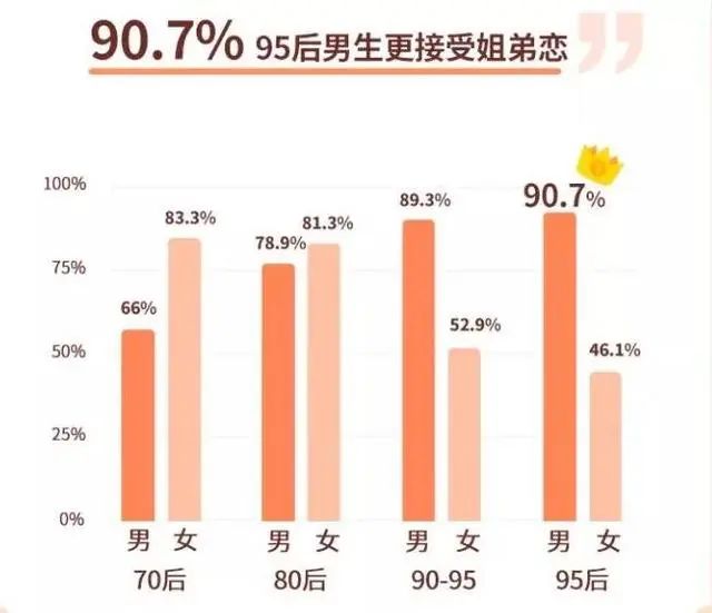 90.7%的95后男生更接受姐弟恋;