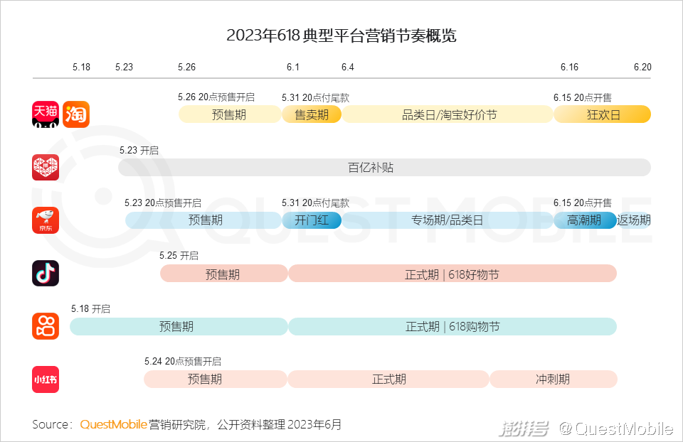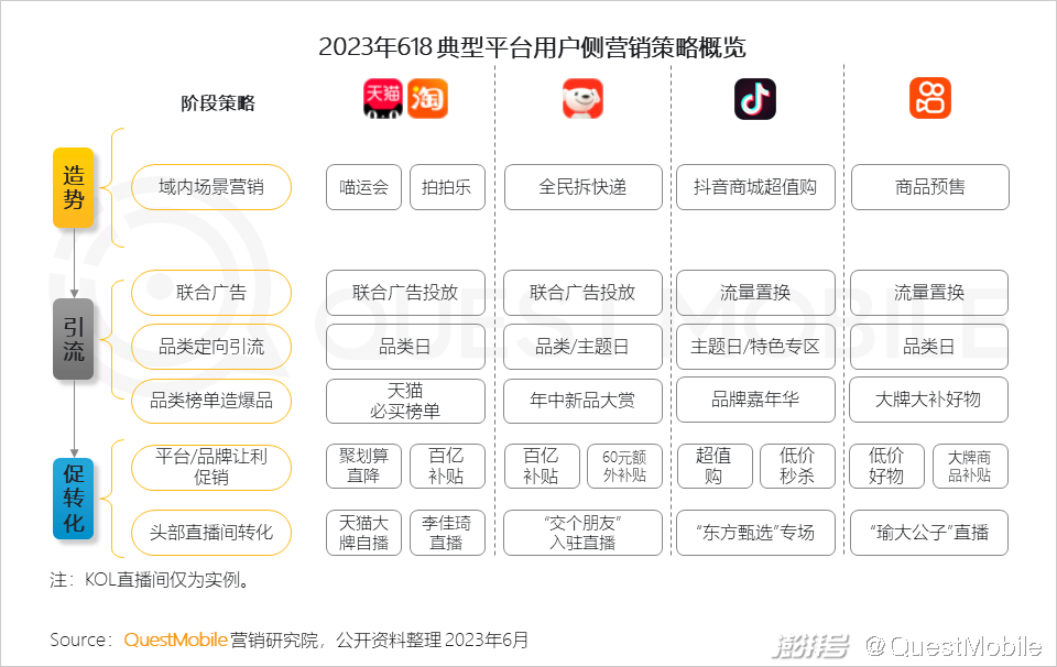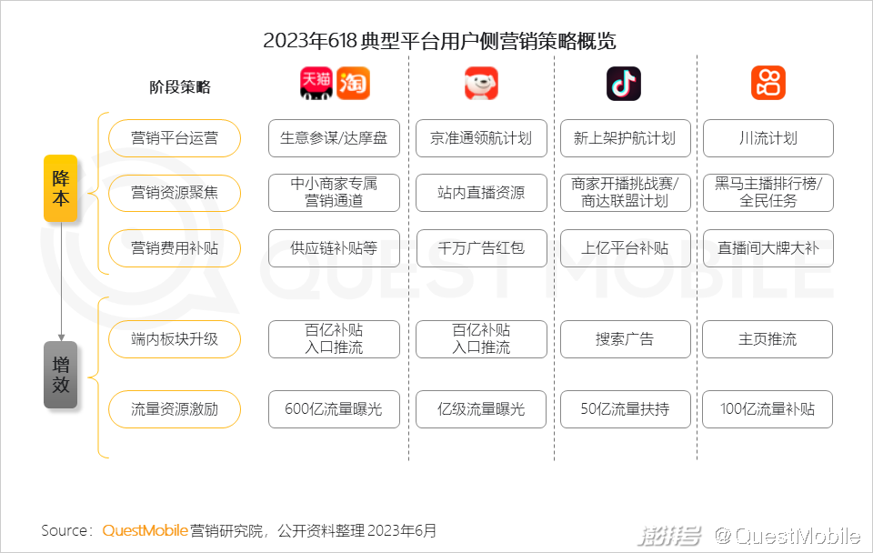 QuestMobile 2023年618洞察:今年618上演“合纵连横”大戏,综合电商防分流、内容平台抢用户,品牌商搞私域
