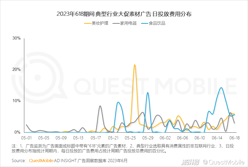 2.4 从重点参与大促的典型行业看,食品饮品关注每个节点的曝光,家电和美妆相对营销更前置
