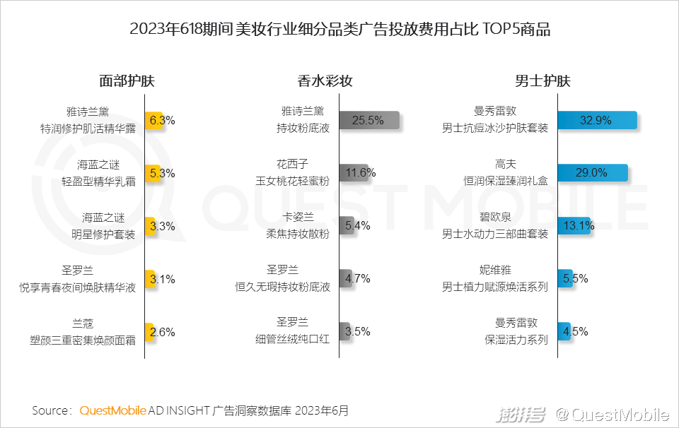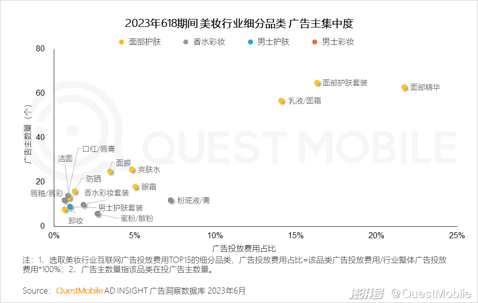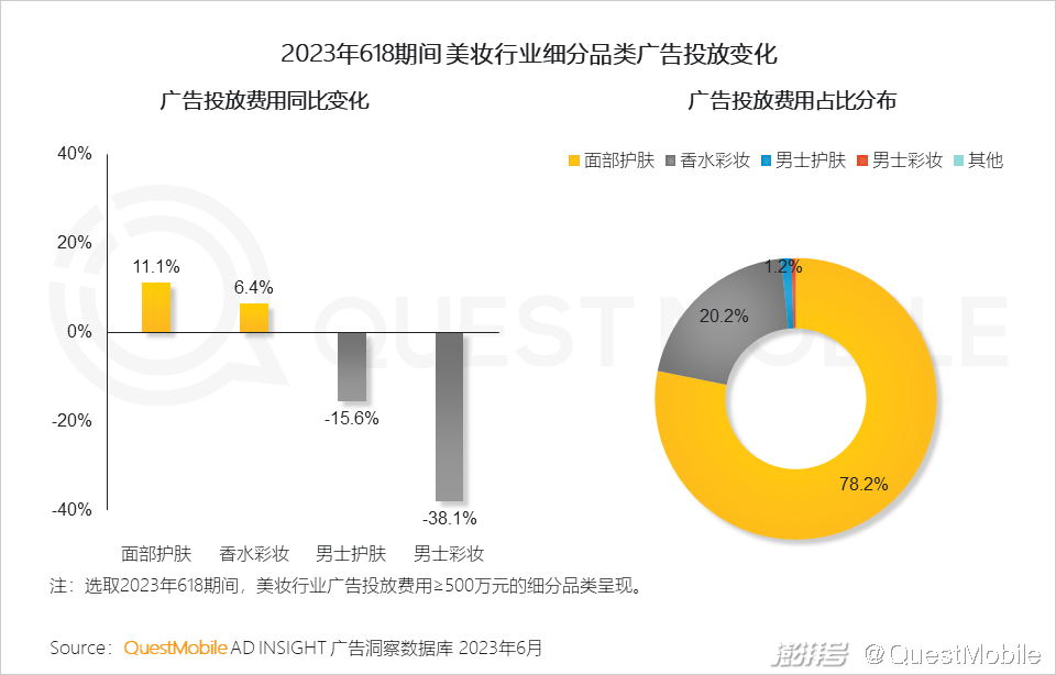2.5 以美妆行业为例,面部护肤与香水彩妆品类占据主要投放资源,投放力度持续增长