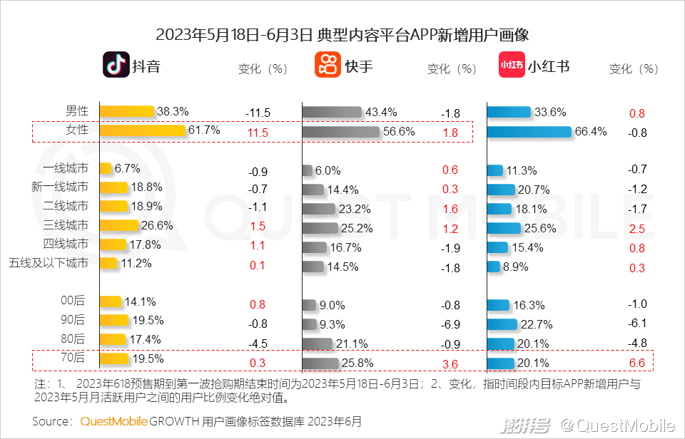 3.1 618大促期间,电商平台增量保持稳定,抖音和快手平台同期通过线下多种营销动作获取新用户