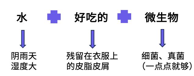 图片来源:自己总结的阴雨天给细菌大量繁殖提供了有利条件,细菌们开心吃着毛巾上的皮屑,不断放出臭气。如果毛巾持续处于不通风的环境,就更容易臭,甚至还会叠加发霉。