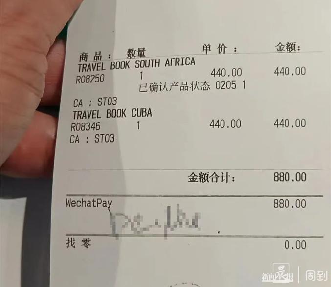 当天下午,部分LV书店单价较低的《城市指南》售罄了,顾客只能购买其他单价较高的出版物。而收银条的商品信息显示,两本书的价格高达880元。