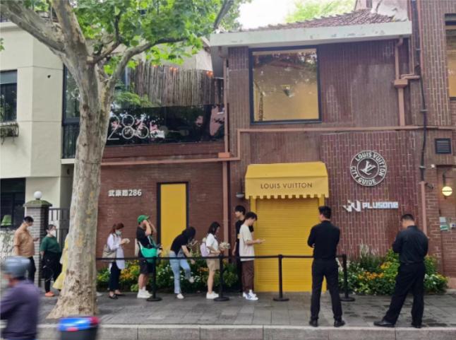 LV书店非常醒目,最上面是用白色标注的Manner LOGO,下面则是白色的LV LOGO。虽然当天正好是上班时间,但排队的白领依然不少,门口还有保安和工作人员在维持秩序。