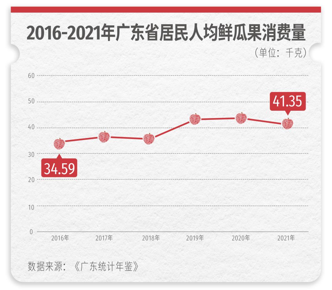 广东居民的菜篮子一年四季都离不开各式各样的水果,近年来,广东居民人均鲜瓜果消费量总体呈增长态势。