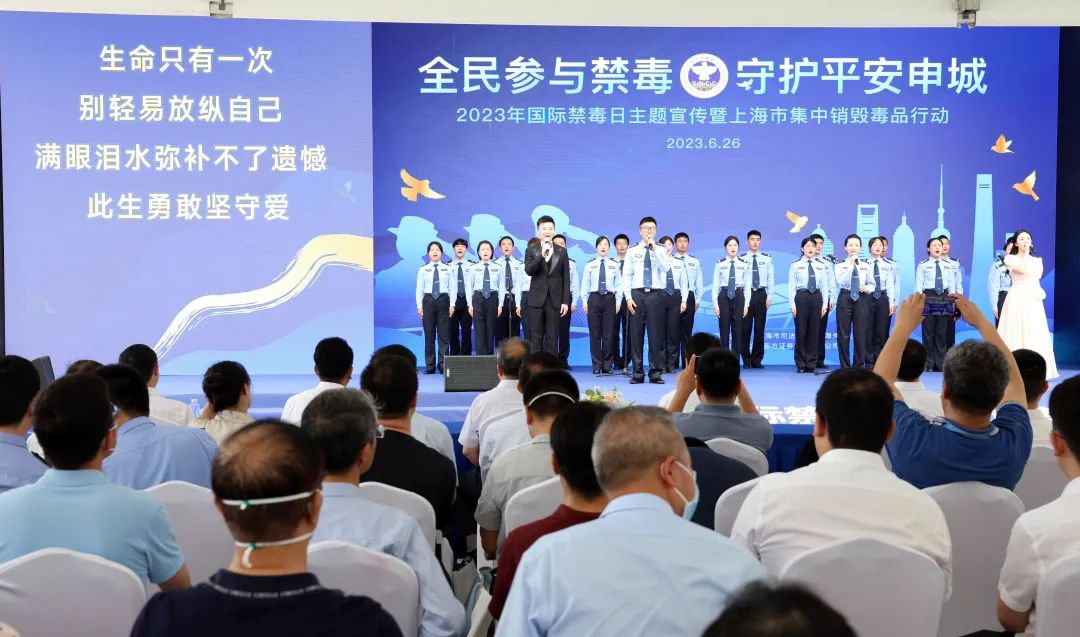 6月26日,由上海市禁毒委员会、市公安局、市司法局、海关缉私局主办的2023年上海市“6·26”国际禁毒日主题宣传活动在上海体育馆举行。活动以“全民参与禁毒、守护平安申城”为主题,活动中,上海公安机关对近年来缴获的809公斤毒品和易制毒化学品进行了集中销毁。