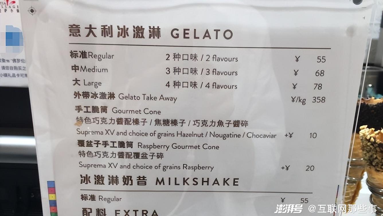 以Venchi(闻绮)为例,它的价格为55元2个球,68元3个球,如果想要蛋筒需要加收15元,额外加奶油或巧克力酱还要再加5元。