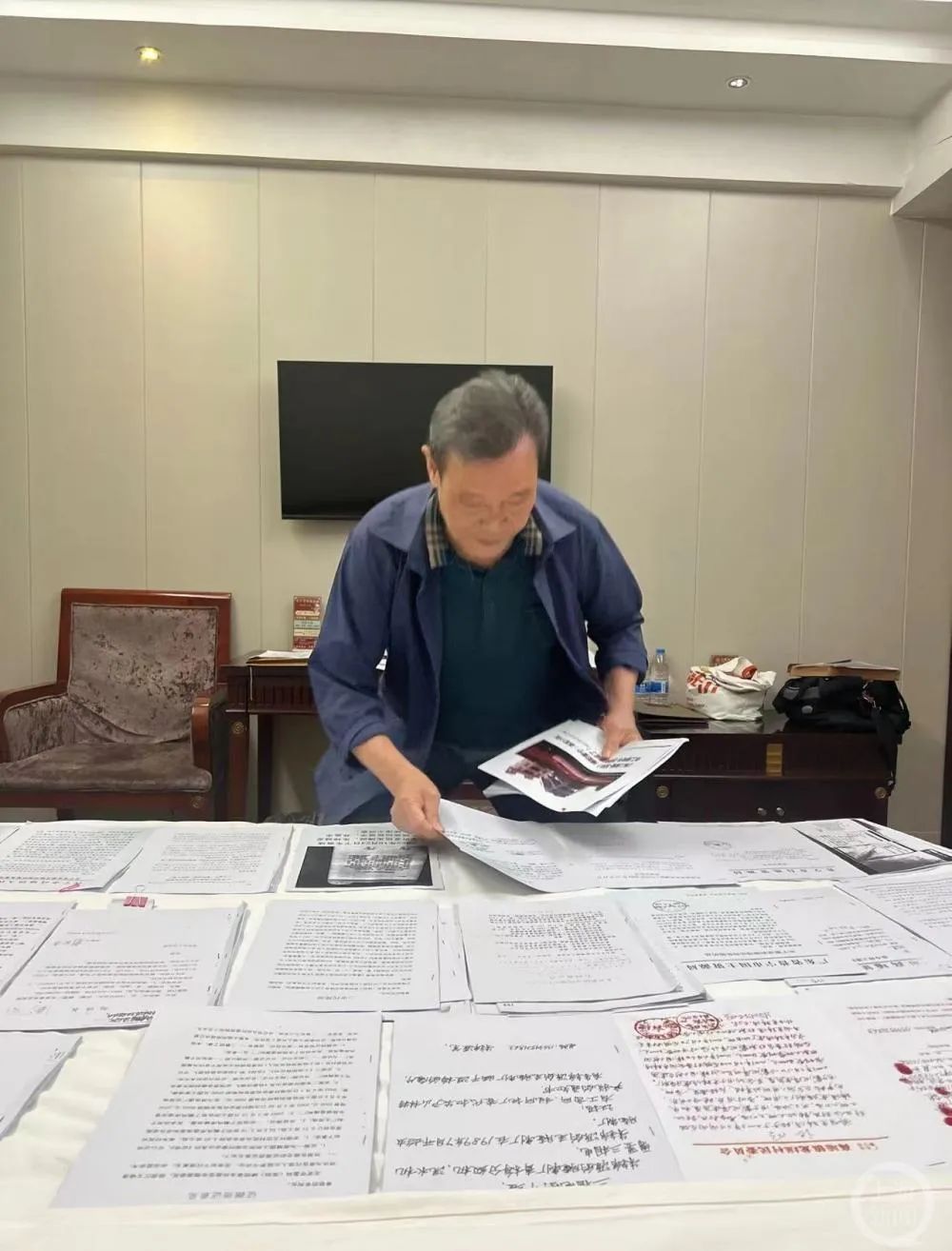 ▲朱锦源向记者展示相关材料。摄影/上游新闻记者 王凯