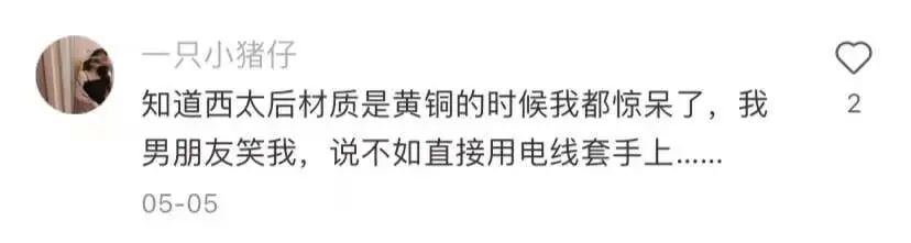 西太后首饰的做工不够精致,与电线无异的黄铜材质更是和质感背道而驰,甚至被嘲“浓浓的义乌气息”。但花上一千多块拿下两元店材质的首饰求转运,在新中产眼里是一种虔诚的奢侈。“奢侈品不就是抛弃性价比,为一些虚头八脑的附加值付费?况且买了西太后项链也不一定真能转运,这就相当于花一两千块开盲盒。”