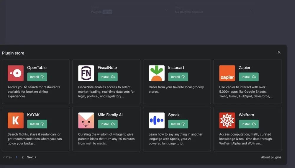 这意味着 OpenAI,再一次将「大模型 App Store」这件事提上了日程:这已经不是 OpenAI 第一次尝试将 ChatGPT 变得更加「商业化」:在一个月之前,OpenAI 已经推出过类似的「应用商店」项目 —— 彼时 OpenAI 开放了 ChatGPT 第三方插件商店,允许用户直接从中下载到第三方插件,整合进自己的 ChatGPT 中拓展至更多使用场景。