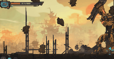 玩家可以利用这些陷阱帮助自己打怪,但是这些陷阱也增加了游戏的难度。而最让小发惊喜的是,《 湮灭线 》的每个 BOSS 都做的非常精致,比如庞大的机器战甲。