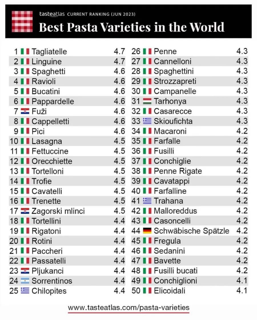 原标题:《“世界上最好吃的意大利面”排行榜,希腊位列第二》