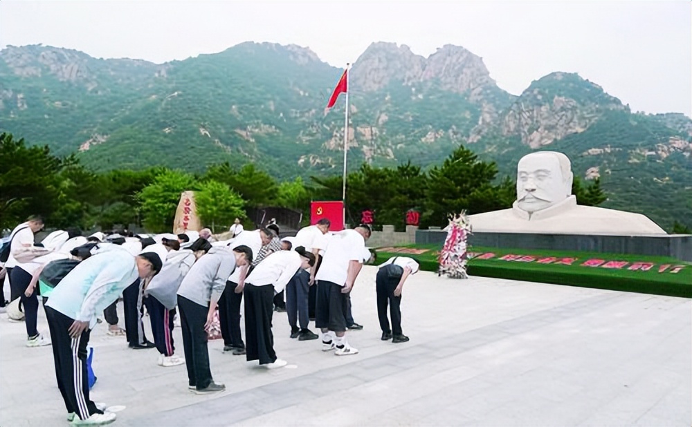 五峰山脚下,参加活动的党员肃穆而立,向革命先驱敬献花篮,向李大钊铁肩纪念像三鞠躬,重温入党誓词。五峰山上漫山青翠,松涛阵阵,党员们沿着先烈当年走过的足迹,在苍松翠柏间听讲解员讲述李大钊同志的革命事迹,上了一堂特殊的党课。