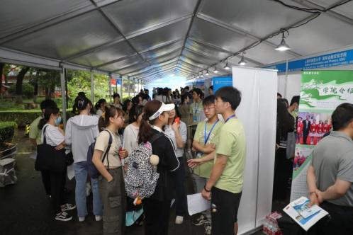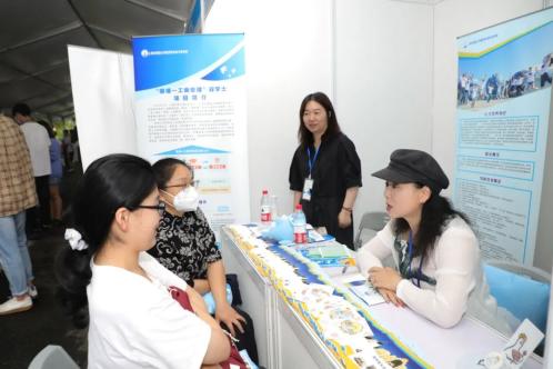 (向右滑动查看更多)有来自上海、江苏、浙江、河南、贵州等地数百名考生和家长冒雨前来参会。各院(系)老师和学生志愿者一起热情的向考生及家长详细介绍院(系)人才培养情况和专业发展前景。招生办公室也就我校今年具体的招生政策、招生计划、录取原则等问题接受了考生及家长的咨询。