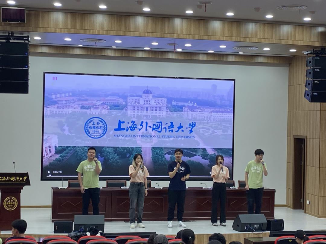 (向右滑动查看更多)报告会前和间歇,上外ACROSS人声乐团、上外学生代表还分别进行了歌唱表演,一曲Auld Lang Syne(友谊天长地久)和上外原创歌曲SISU ROAD把我们带入了上外美好的校园生活。上外学生代表梁媛媛还进行了古筝独奏表演。在会场,学校还为进场的同学们准备了小惊喜——上外招生吉祥物“特稳豚”,祝愿大家都能圆梦上外。
