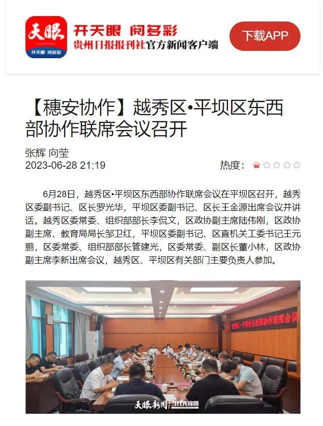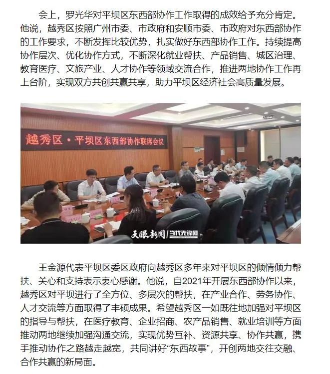 【穗安协作】越秀区•平坝区东西部协作联席会议召开