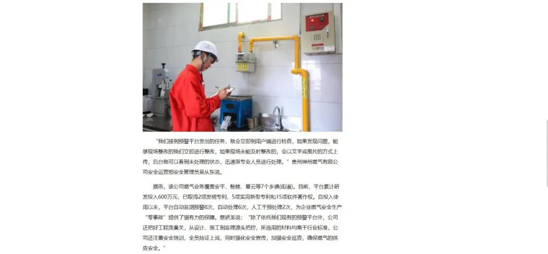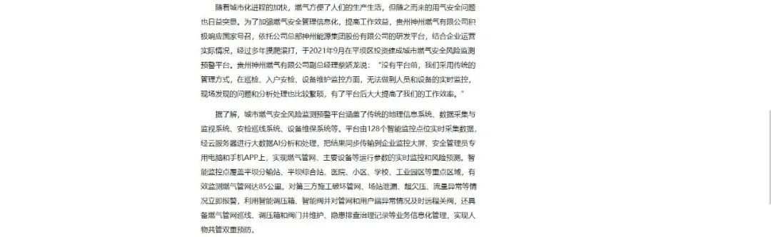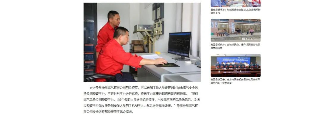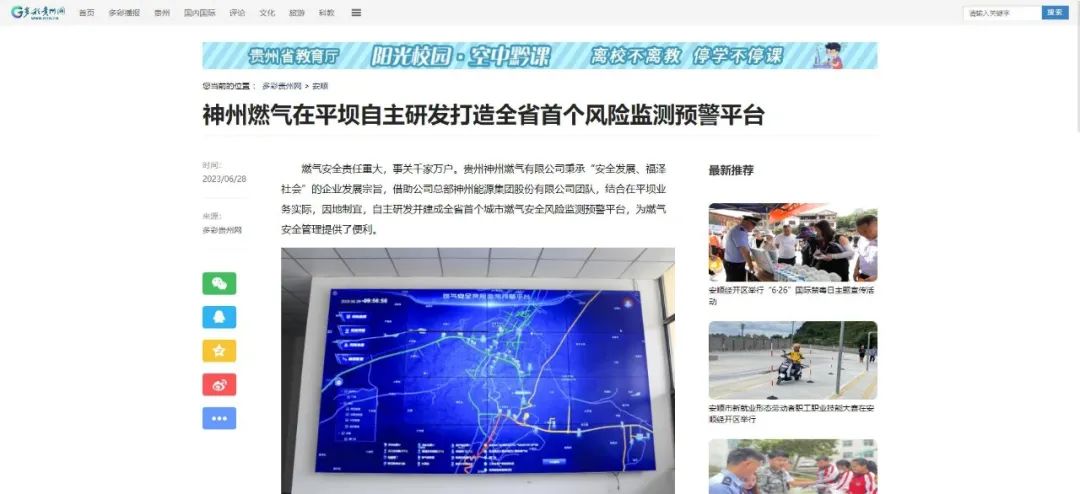 多彩贵州网2023.6.28报道神州燃气在平坝自主研发打造全省首个风险监测预警平台
