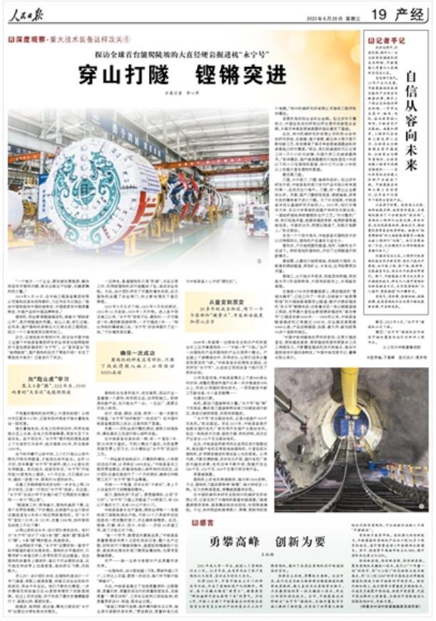 “中国中铁将瞄准世界科技前沿,在更大掘进直径、更快掘进速度、更深掘进深度和更复杂工况上持续发力,不断攀登掘进机技术制高点,推动中国制造向中国创造转变。”中国中铁党委书记、董事长陈云表示。(人民日报记者 李心萍,部分图片为编者所加)