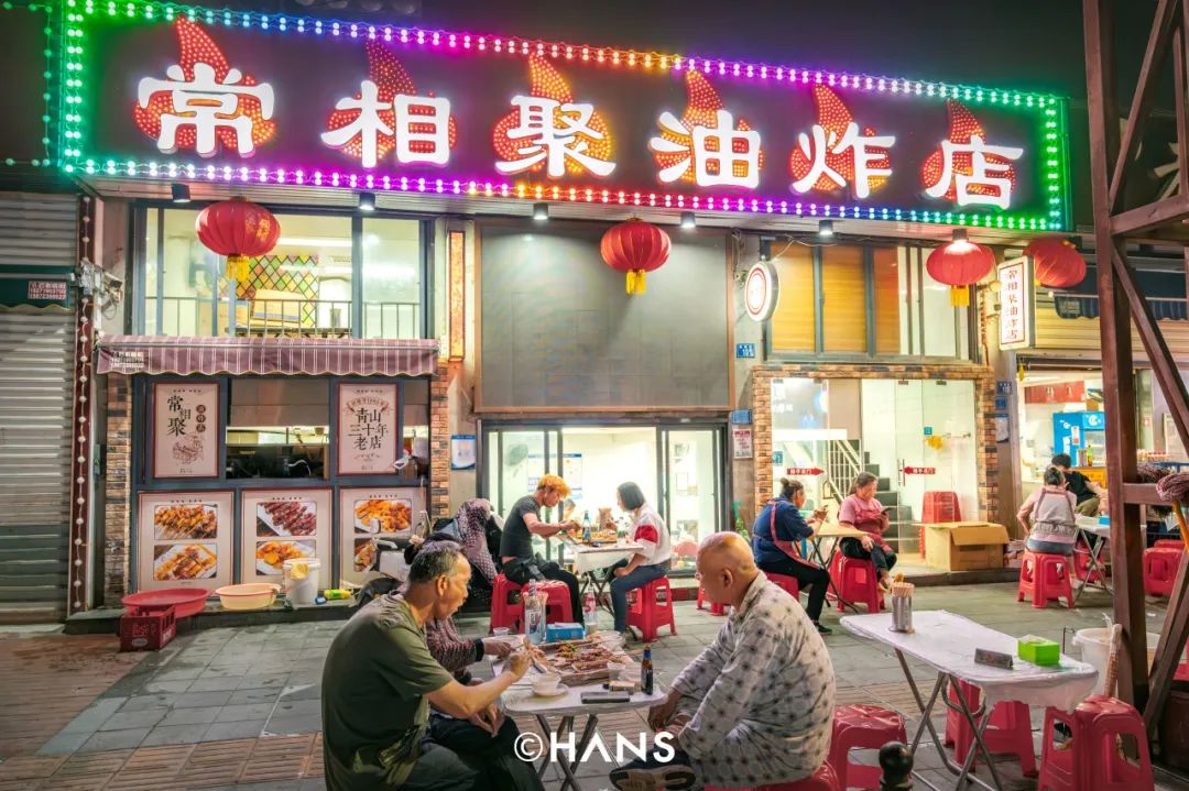 恩施街西边的「常相聚油炸」,能让光头大哥们心甘情愿蜷在小木桌上撸串。