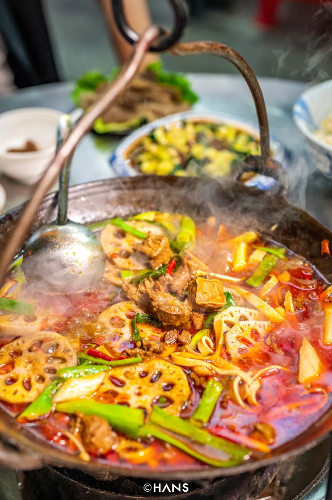 小杨·兔自贡菜夏天也坚持做吊锅的「土家吊锅寨」,锅下烧的是明火,锅里煮的是牛杂牛筋,武汉人上火也要吃。