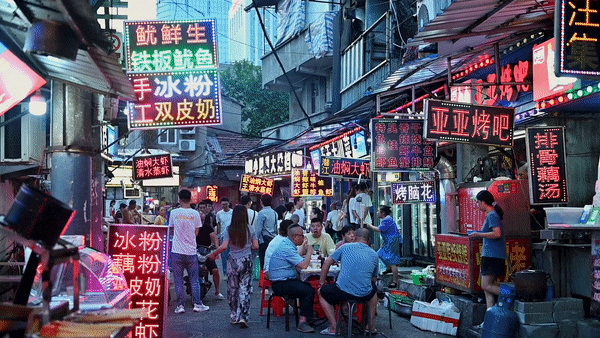 恩施街是武汉美食密度最高的宵夜街。1.7km长街,宵夜美食店有100多家。晚上17:30后,恩施街是允许商户外摆的,串串、烧烤、火锅、炸炸、卤菜、吊锅……你能想到的几乎所有类型宵夜,都摆出红红绿绿的餐桌椅。
