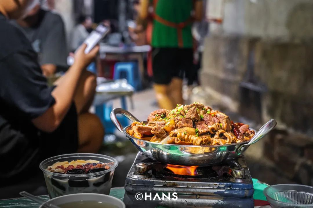 最后,是绕不开的武汉宵夜街顶流,汉口万松园。夏氏砂锅、靓靓蒸虾、巴厘龙虾、阿宝生煎、潘驼背腰花粉、品品卤品……每家都是心头好,每家都是排队王。