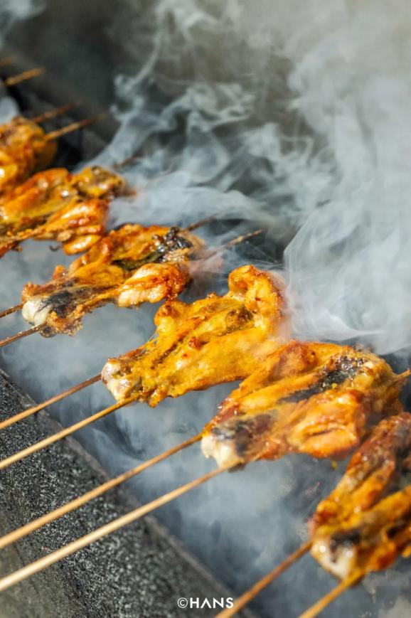 长堤街还有一家「云南销魂烤鸡腿」,做云南风味烧烤,店主是云南人。生鸡腿上炉,撒香料、刷油、翻转……花一个小时慢慢烤熟。端上桌时,鸡皮还在滋滋冒泡。