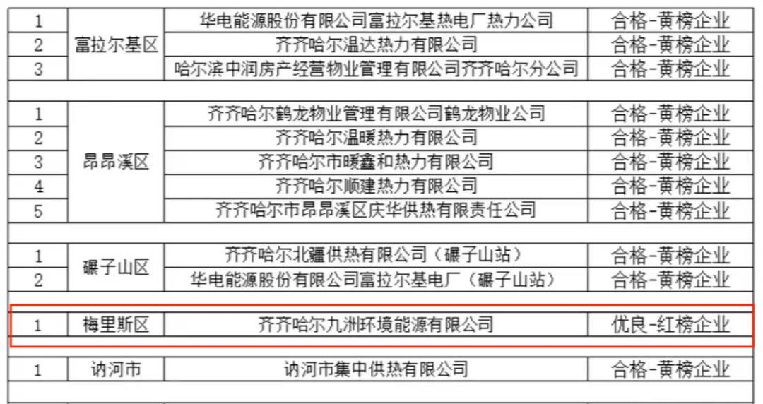喜讯!齐齐哈尔九洲环境能源有限公司荣登供热质量“红榜”企业
