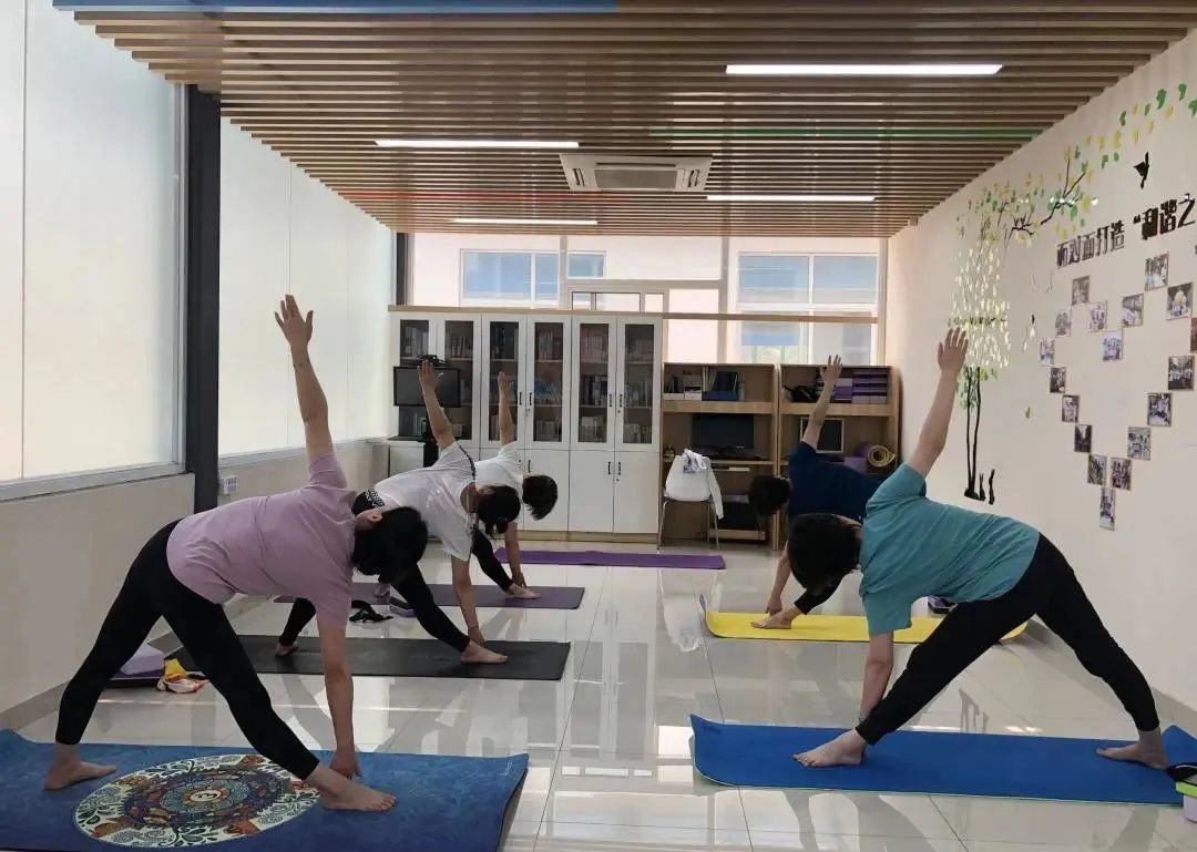 值得一提的是,“L”型格局将休息室分为两个功能区,一座定制水吧台完成了休息区与健身区的隔断。每周一、三、五中午是职工瑜伽锻炼时间。职工俞晶金是瑜伽资深爱好者,“以前工会在东宫‘百领健身’帮我们请了一位老师,单位里逐渐聚集了一群爱练瑜伽的人,大家都在会议室里挪地方练一练,现在休息室场地宽敞了,我们练的劲头更足了。”