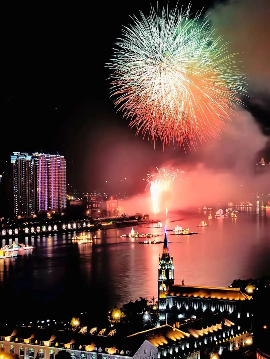 在梅河口的夜晚,精彩演出、灯光表演持续不断。