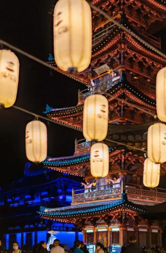 小红书@ Rosie的旅行日记待到夜幕降临,灯笼亮起,映照着层叠的飞檐翘角,悠长的石板街巷,刹那间便仿佛梦回盛唐。