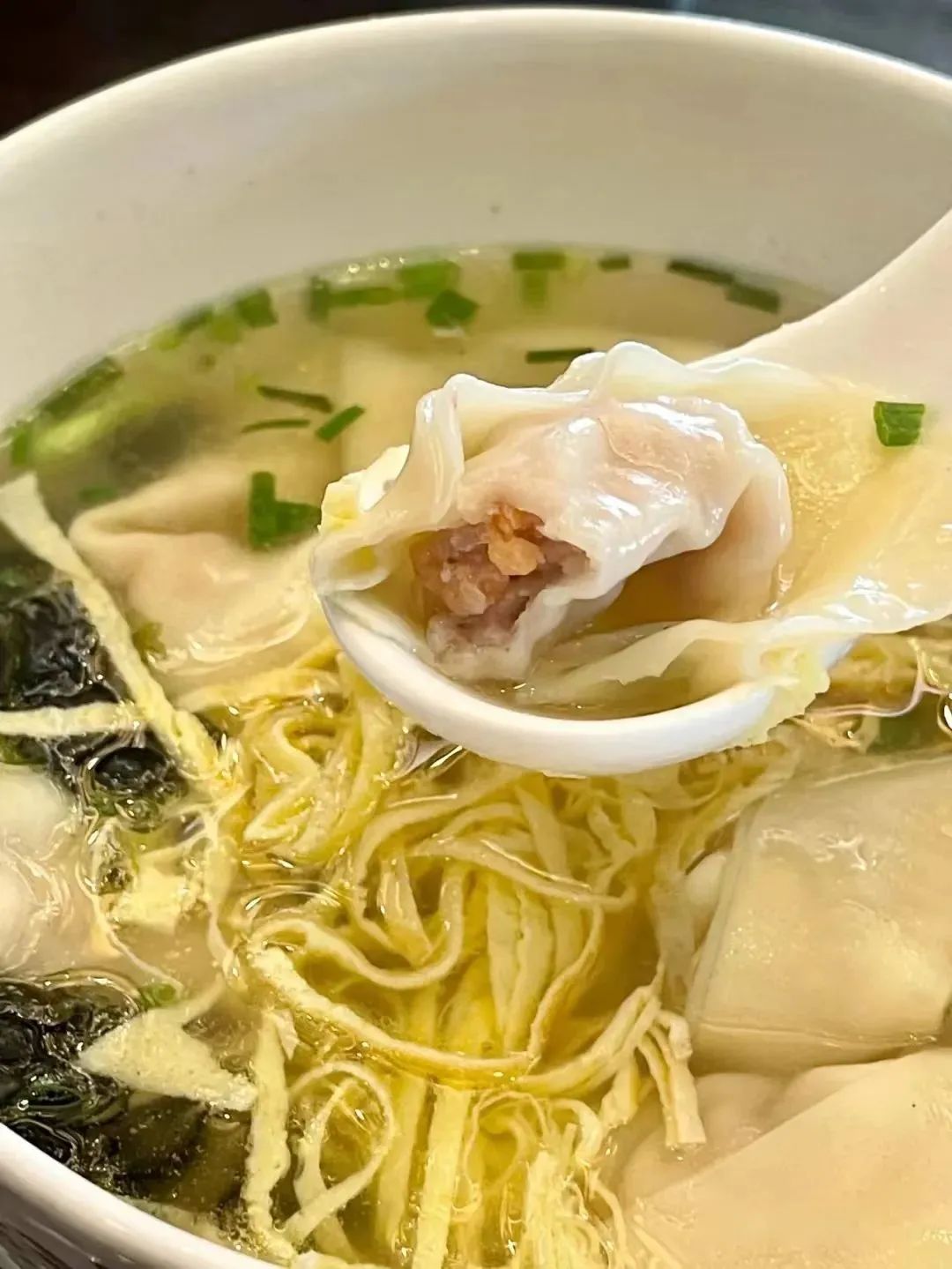 这家馄饨在大众点评上一直名列前茅,馄饨皮薄筋道,开洋馅儿也很鲜美,值得一尝。