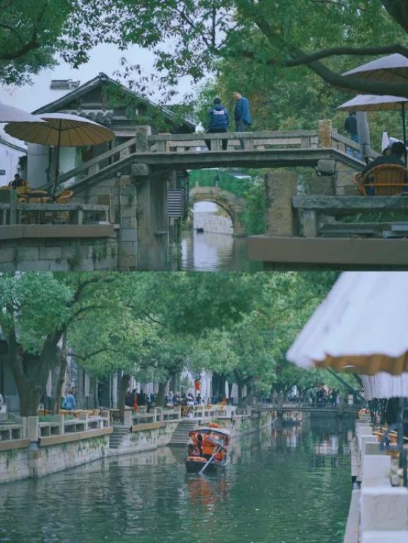 小红书@ 郭夫人你可以搭一艘摇橹船,在吱吱呀呀的桨声水影间晃晃悠悠,漂过纵横河道,穿过古朴桥洞,依稀就是梦里的江南旧时光。