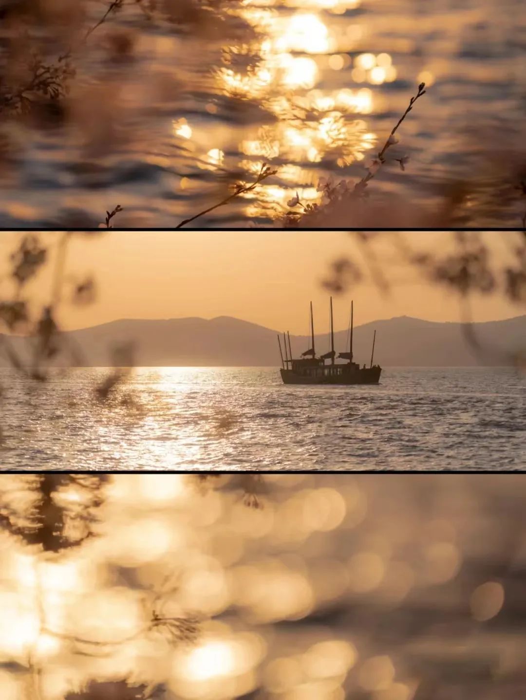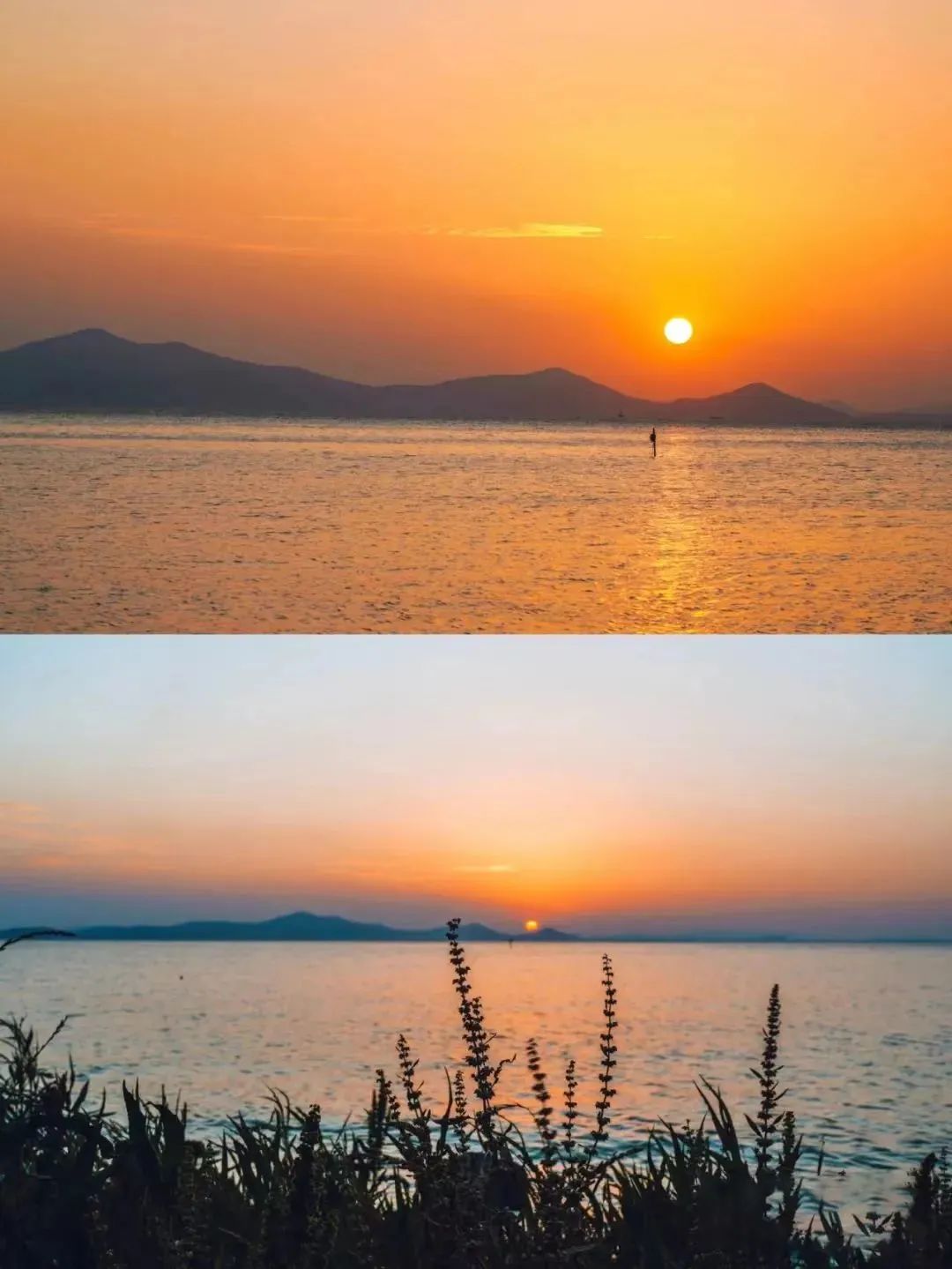 辽阔无垠的太湖,盛起了鼋头渚的三月落樱,也妆点着十里明珠堤的风光,坐在湖畔等一场日落,晚霞一点点染红湖面,如油画般流淌开来,温柔而又绮丽。