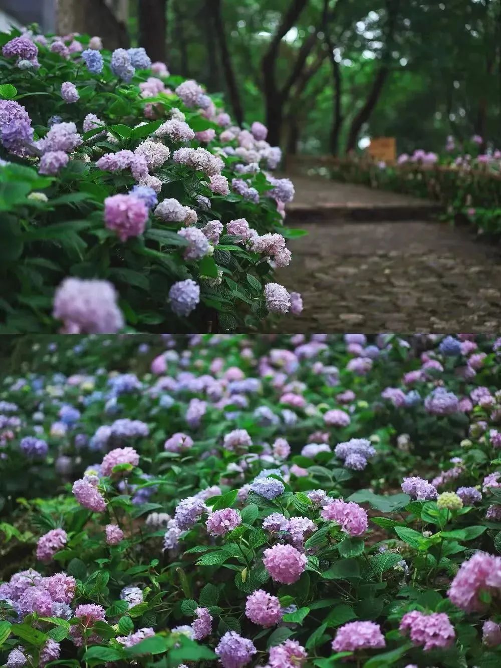 小红书@ 摄影师闫三这片是无锡最大的紫阳花海了,每一株花都是由信徒捐赠的,一株株,一丛丛,一簇簇,在日积月累下,凝聚成了这片富有灵气的花海。
