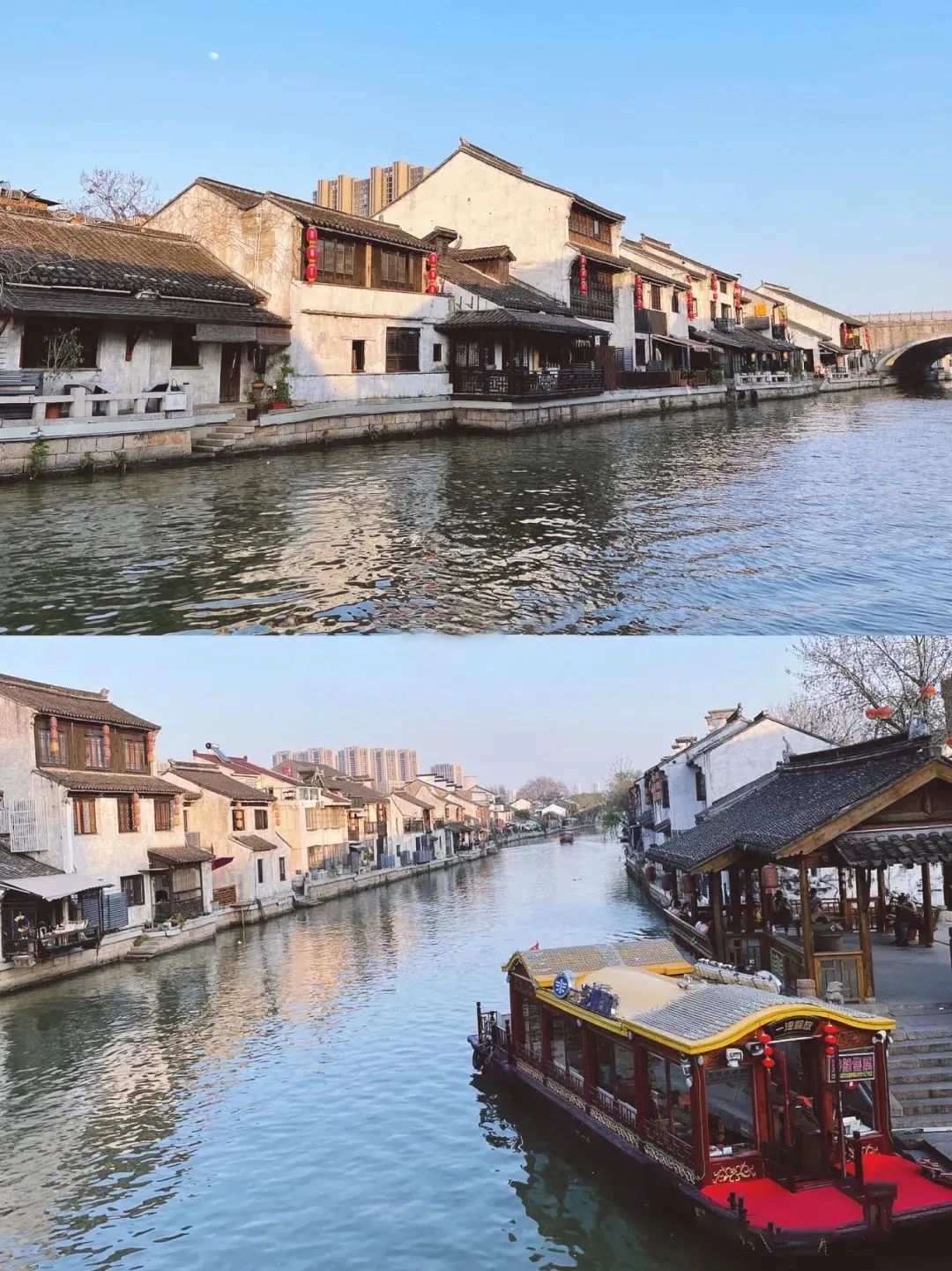 小红书@ 叶子的旅行手贴整个古镇依托着京杭大运河,沿着浜水街和直街缓缓铺展开来,处处可见小桥流水人家,还有坐着喝茶的本地人,满满都是烟火气息。