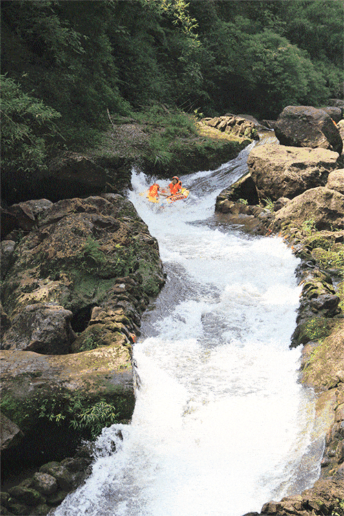 悠悠夏日,在楠溪江乘一竹筏,仿佛贴水而坐,竹筏似游鱼,大有“小小竹排江中游,巍巍青山两岸走”之感,无比惬意。湖州·浙北大峡谷