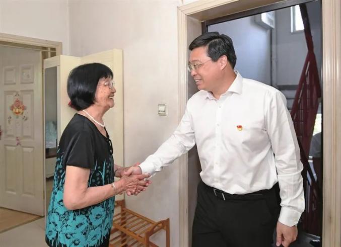 省委常委、市委书记韦韬慰问生活困难党员韩风英。梁 琛 摄“七一”前夕,省委常委、市委书记韦韬走访慰问老党员和生活困难党员,代表市委向全市共产党员致以亲切问候。市委常委、秘书长裴耀军参加。