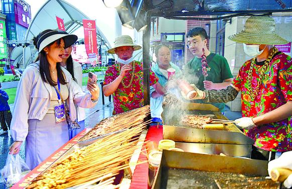 “西宁的美食真好吃,在全国都很有特色!”几名来自四川的游客为青海美食点赞。不少游客坐在小吃摊边的椅子上,津津有味地品尝着青海味道。一名来自南京的游客说:“我带着家人自驾到青海旅游,青海的美景有口皆碑,没想到还有这么好的美食,美景和美食真是缺一不可。”
