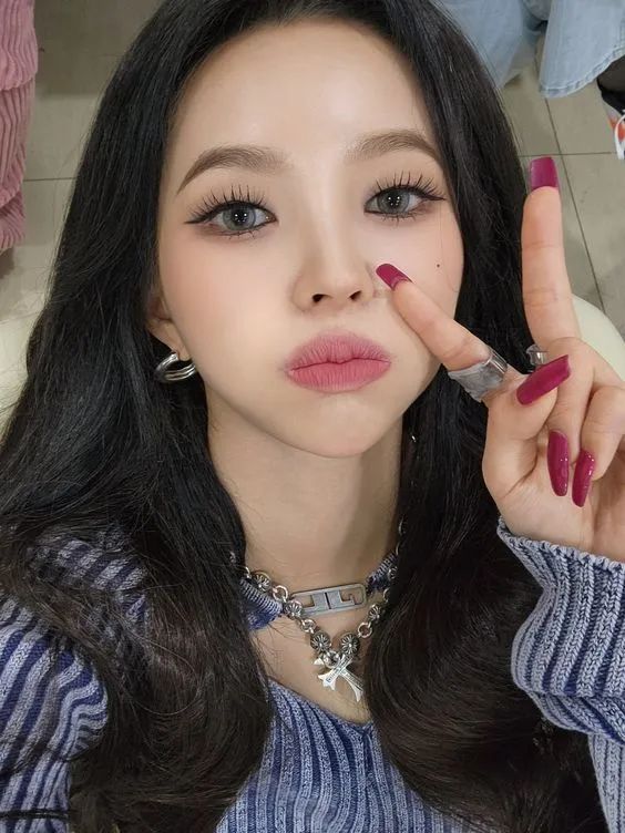 momo的眼妆非常突出卧蚕,这种卧蚕放到别人脸上可能会很“死亡”,但因为她本身的眼睛条件就很好,所以反而能起到锦上添花的作用。